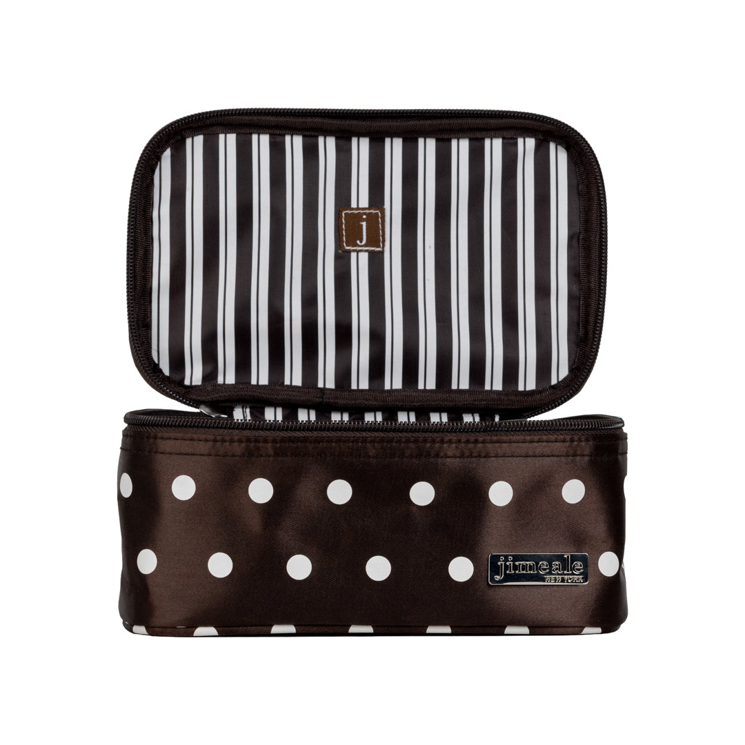 Get ready in style with our Classical Makeup Bag, the perfect blend of elegance and practicality! Boasting a vibrant satin exterior and our signature chocolate and white stripe lining, this bag adds a touch of sophistication to your daily routine or when you are on-the-go!
