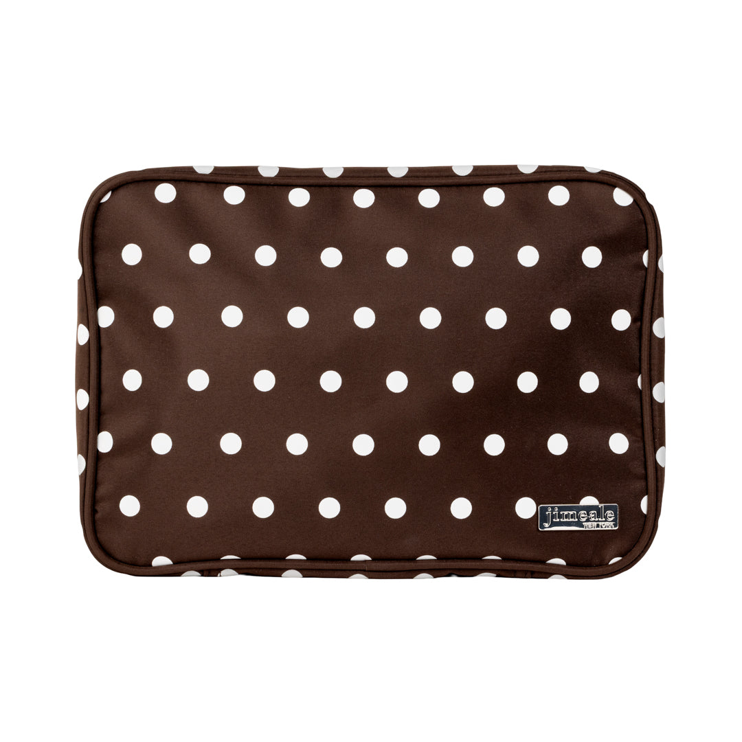 Elevate your travel and daily essentials with the 'Tribeca' Bag.  Crafted with a sumptuous satin exterior and lined with our iconic chocolate and white stripe lining, this bag radiates timeless elegance and a top seller.