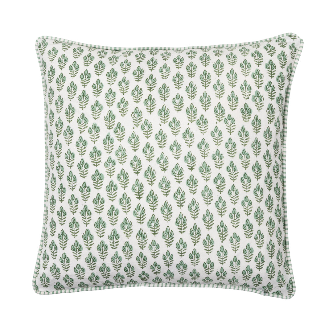 Large Block Print Cushion Green