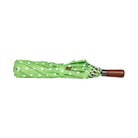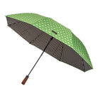 Discover the charm of our vibrant, polka-dotted umbrellas, bursting with playful color.  Crafted with a double-layered canopy, each features our signature chocolate and white striped lining, blending elegance with delight.
