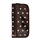 Elevate your journeys with our meticulously crafted travel organizer, designed to keep your cards and essentials impeccably arranged. Its sleek polka dot, elegant exterior is complemented by our signature chocolate and white stripe lining.